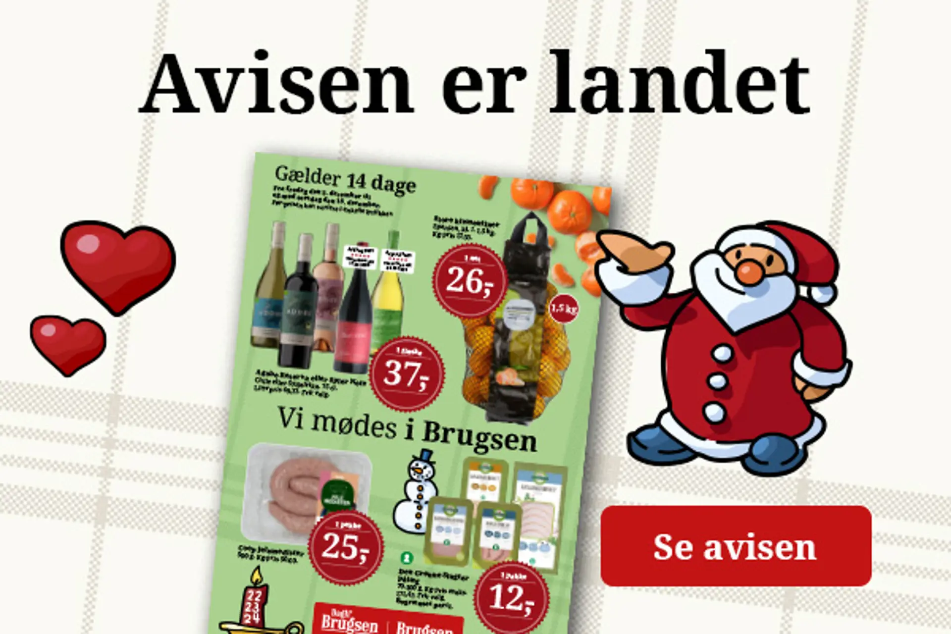 Her kan du tilmelde dig Brugsens nyhedsmail. I vores nyhedsmail får du nyheder om tilbud og andre gode varer - sendt direkte til din indbakke. Så kan du være sikker på at være opdateret med seneste nyt fra Brugsen.